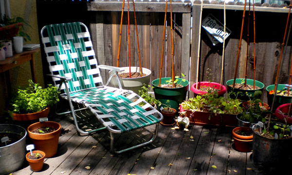 The porch on the other side of the house, connected to the kitchen with french doors. Some stuff is growing but the weather…