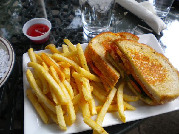 And grilled cheese with pesto sandwich and truffle fries.