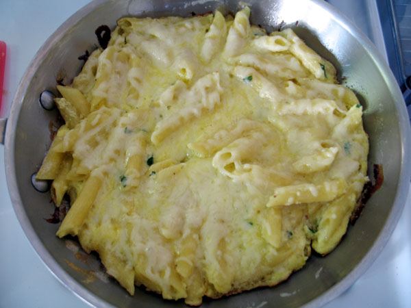 Homemade pasta fritatta. I made it up myself, too and it was tasty!