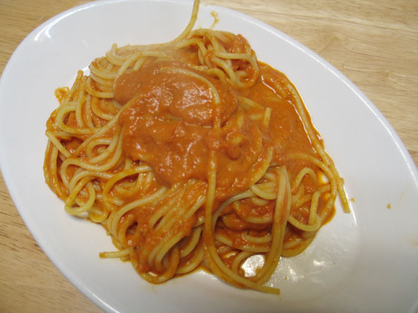 I was in LA last weekend and we went to a really good Italian place- Amici in The Americana At Brand in Glendale- and I’ve been wanting to try and copy their spaghetti with red sauce, so I did last night. I think it was pretty darn close.